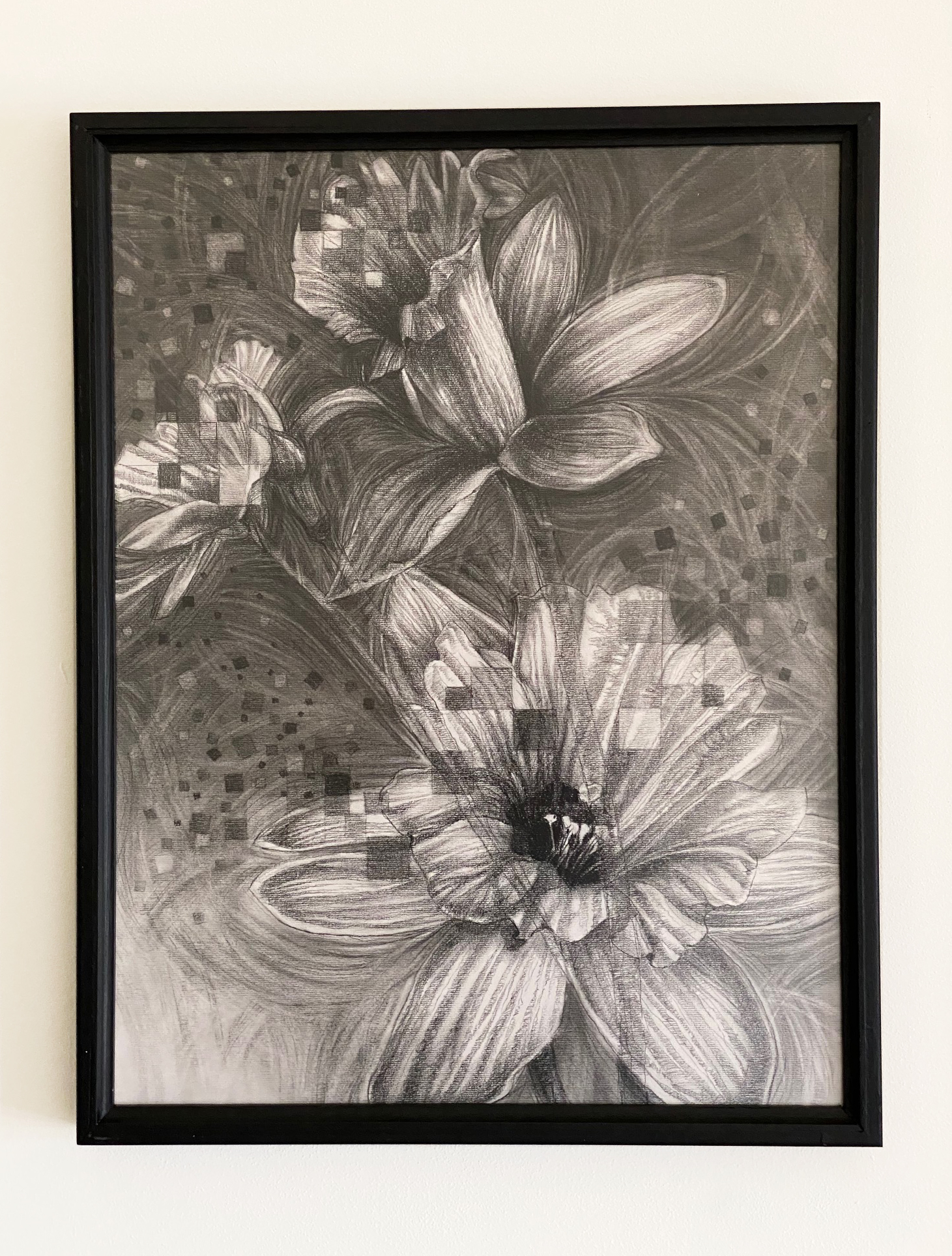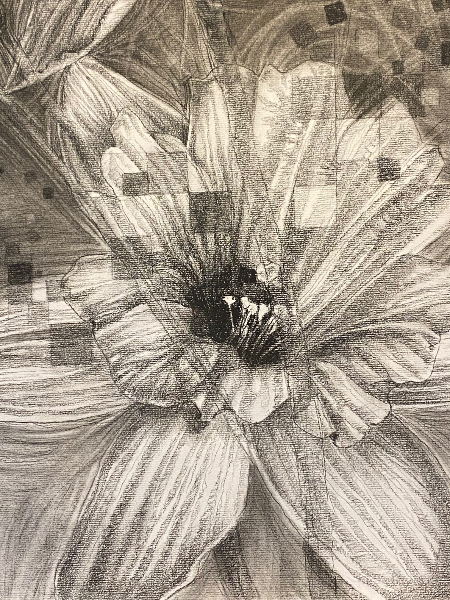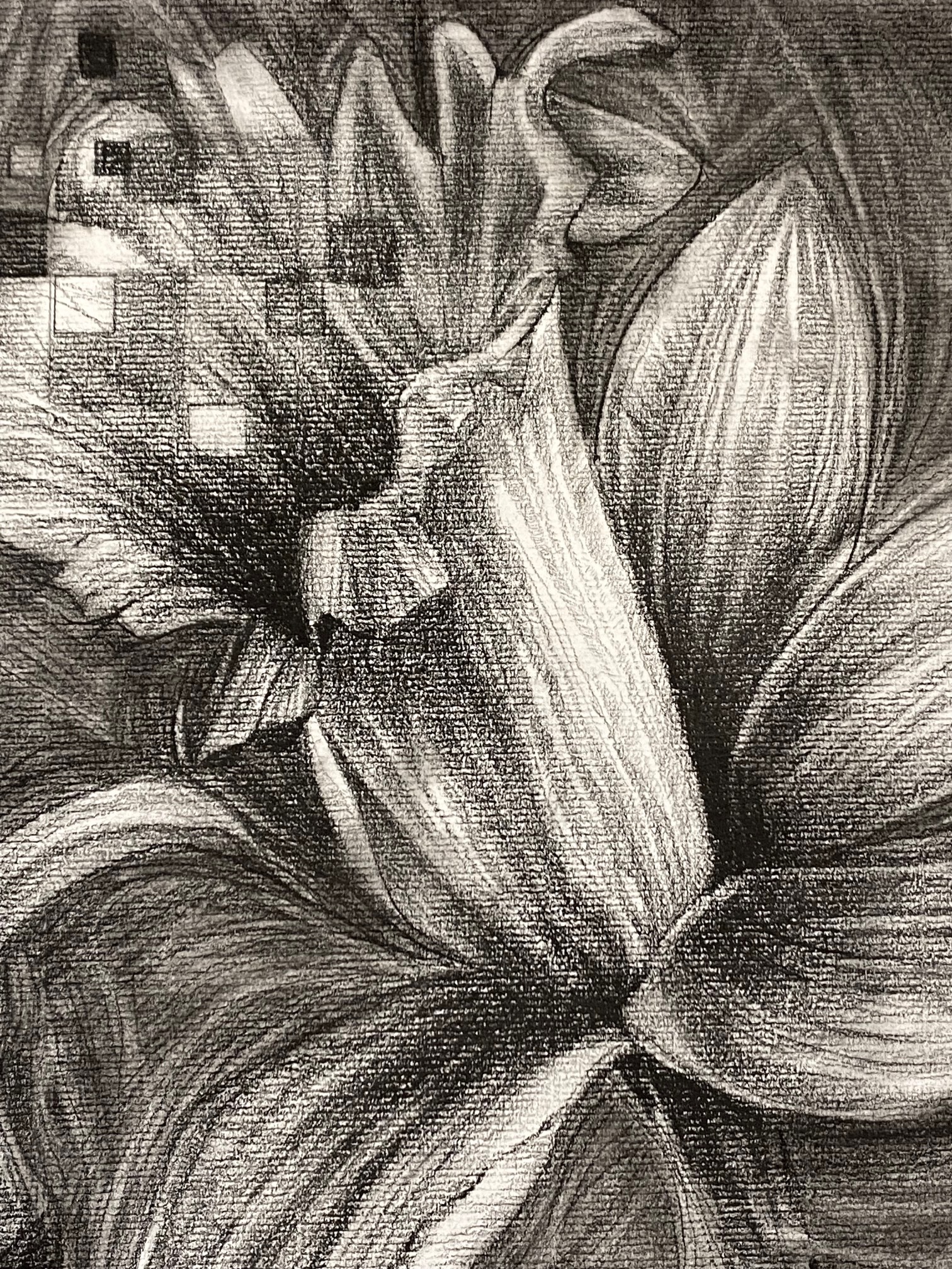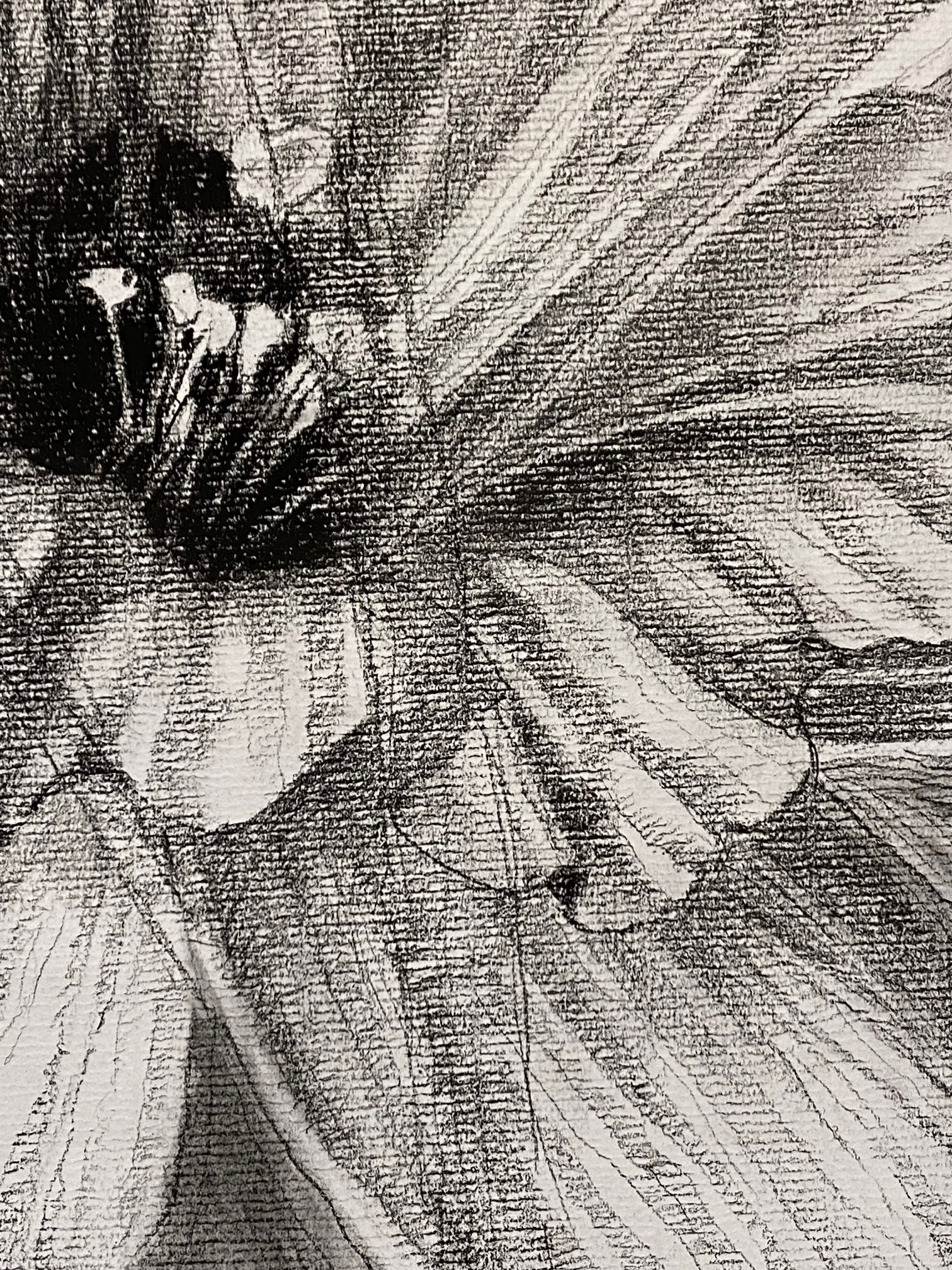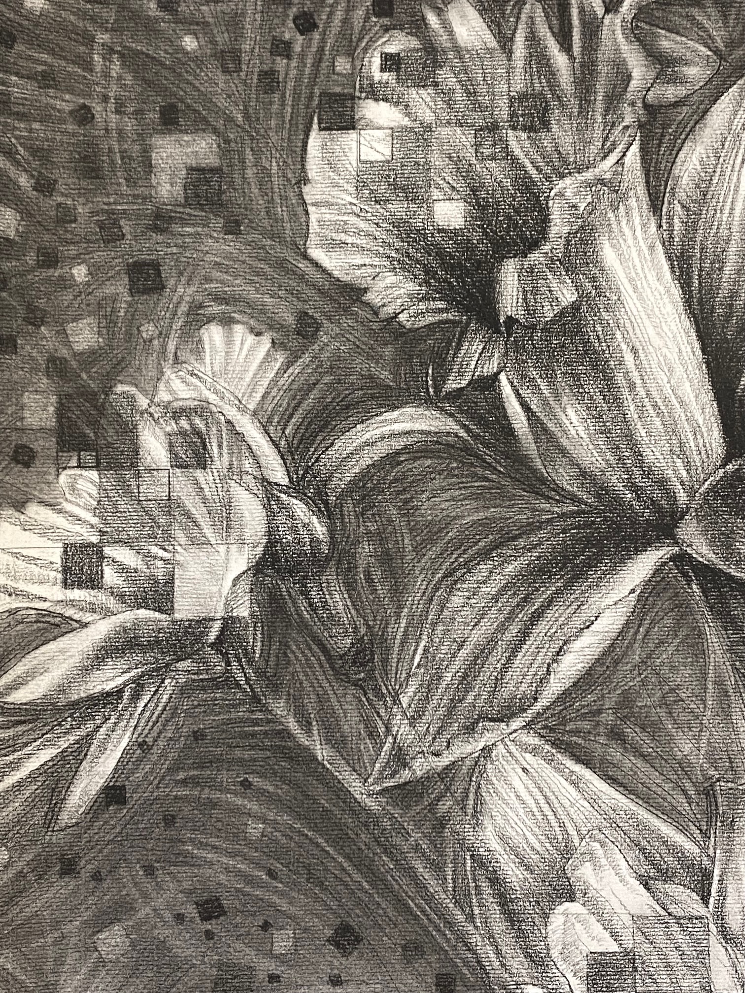 Charcoal on paper. Gladiola’s in a vase on Canson paper.
