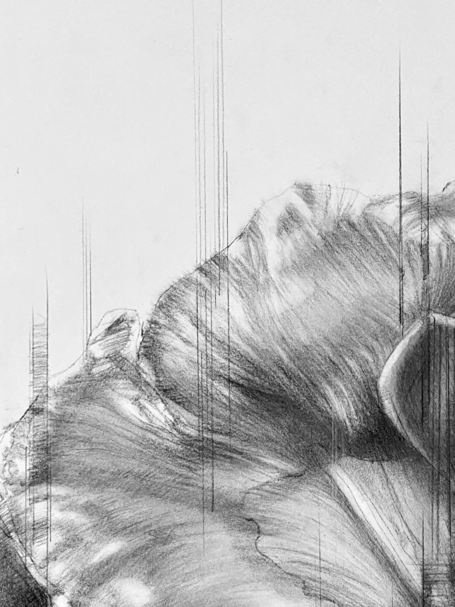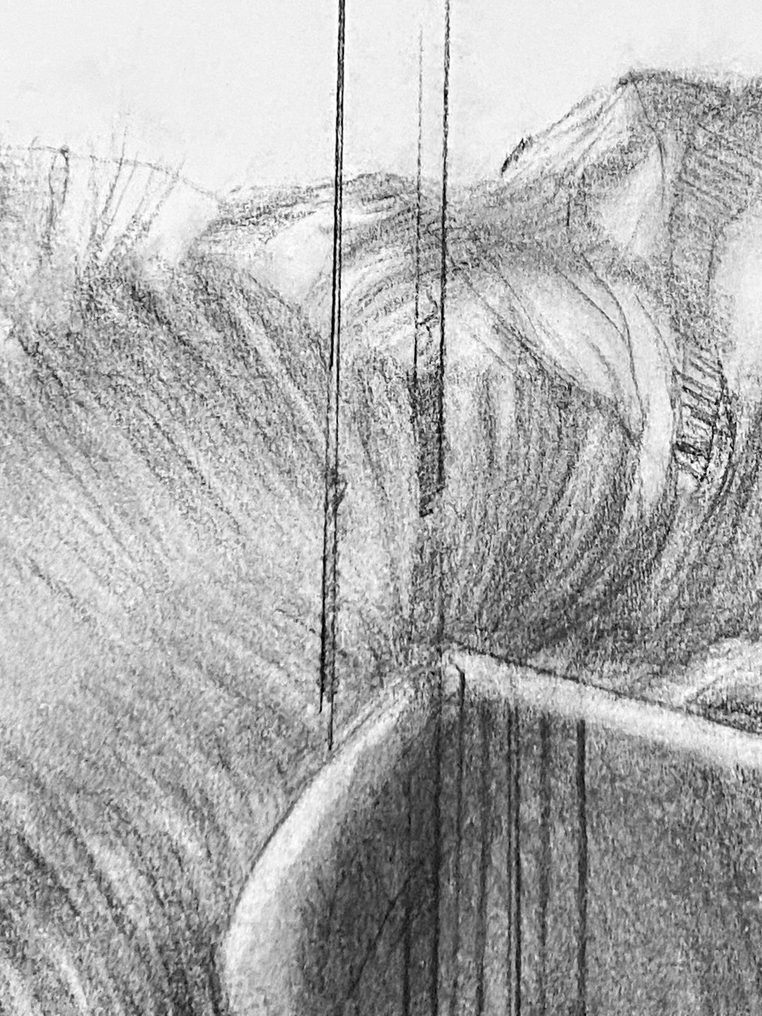 Charcoal on Canson paper. Our brave Camellia blossoms braved the frost of winter and bloomed on the middle of a snow storm.