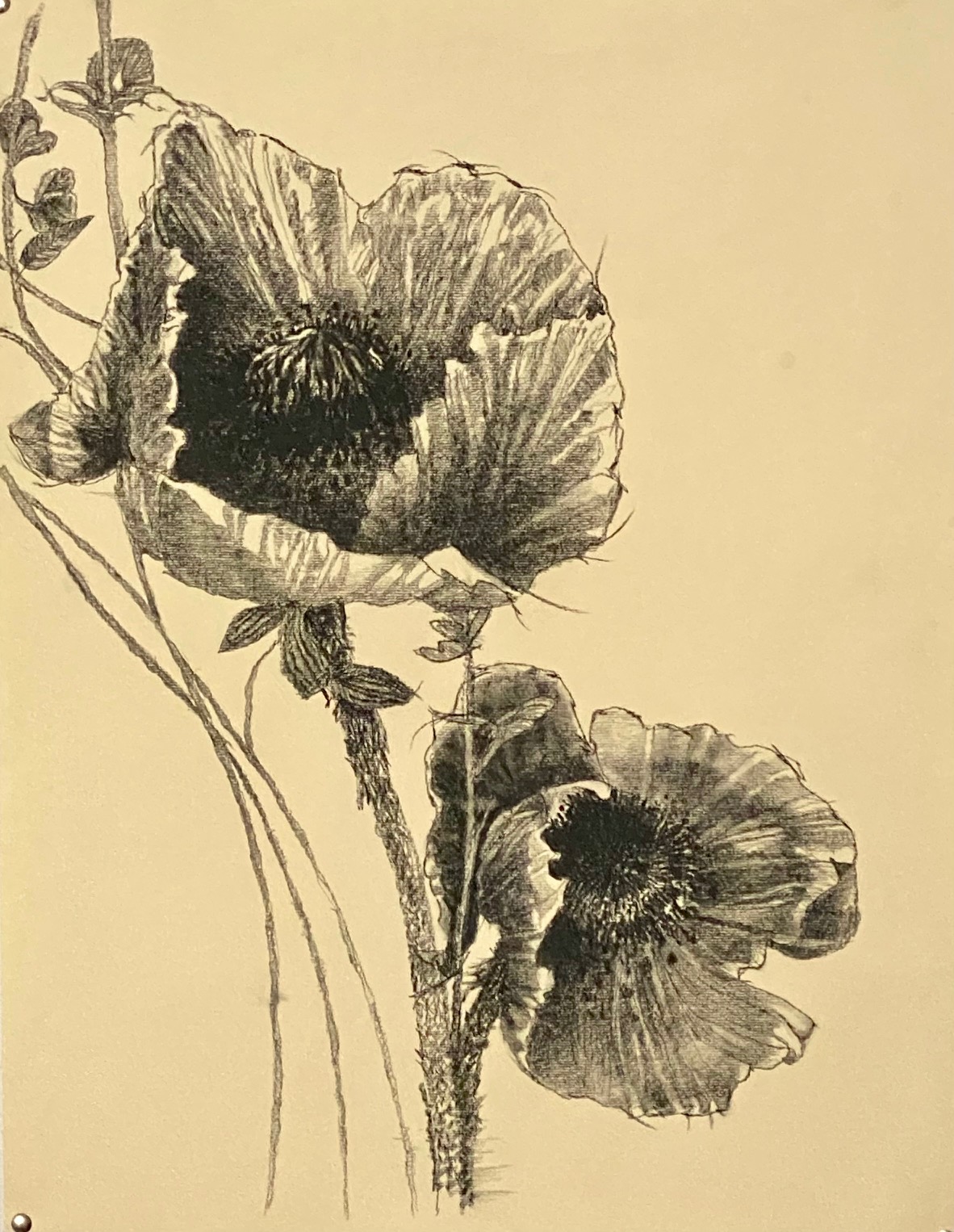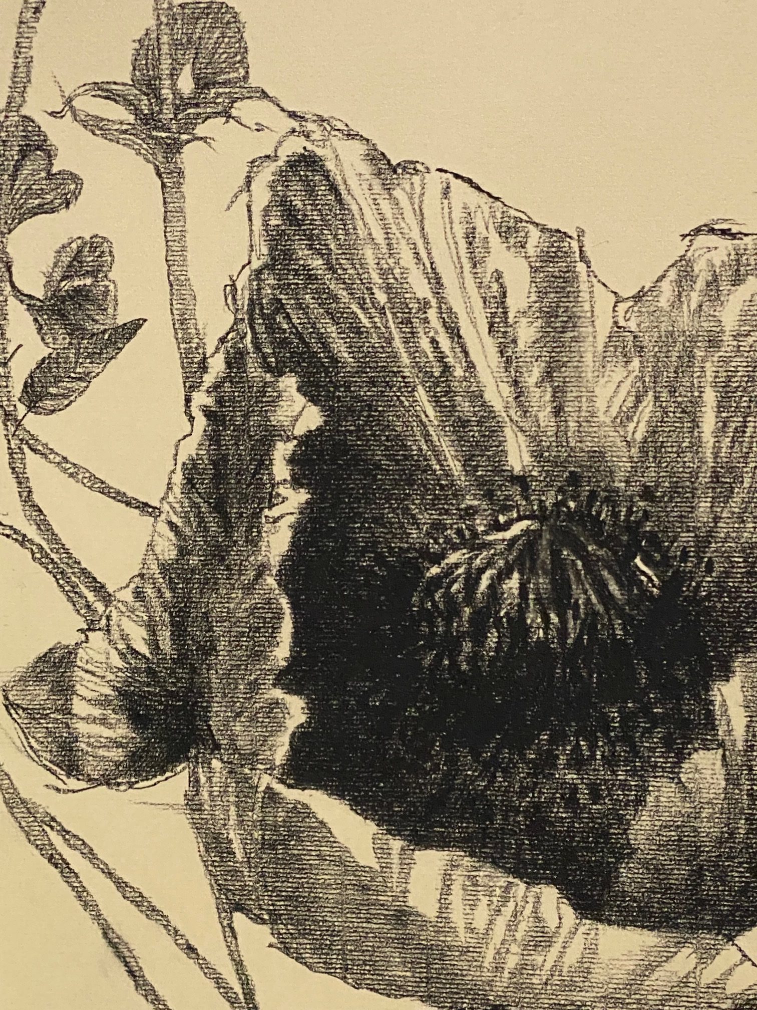 20×25 inches, Charcoal on paper. Poppies from my backyard on Canson toned paper. Title is after the poem by Louise Glück.