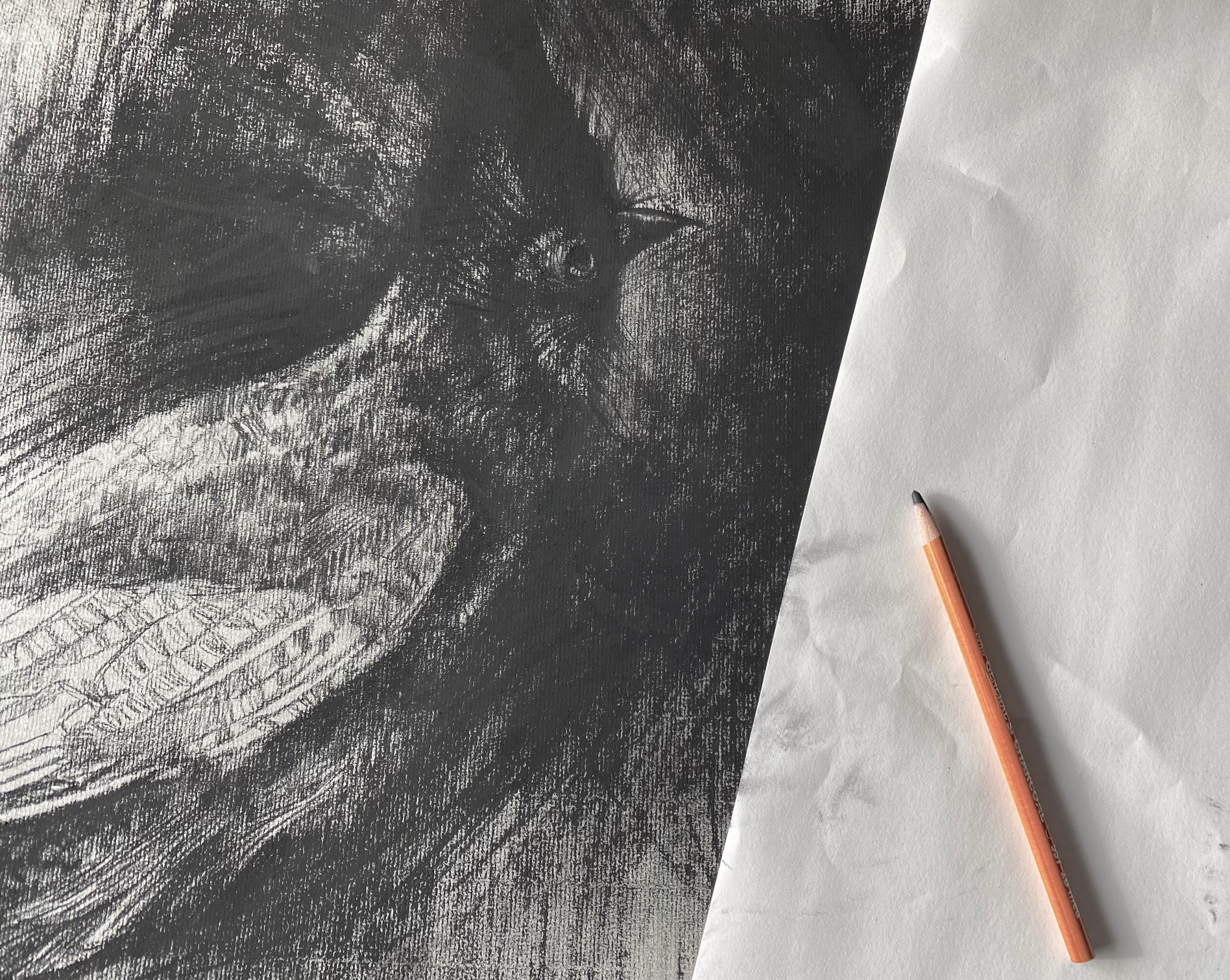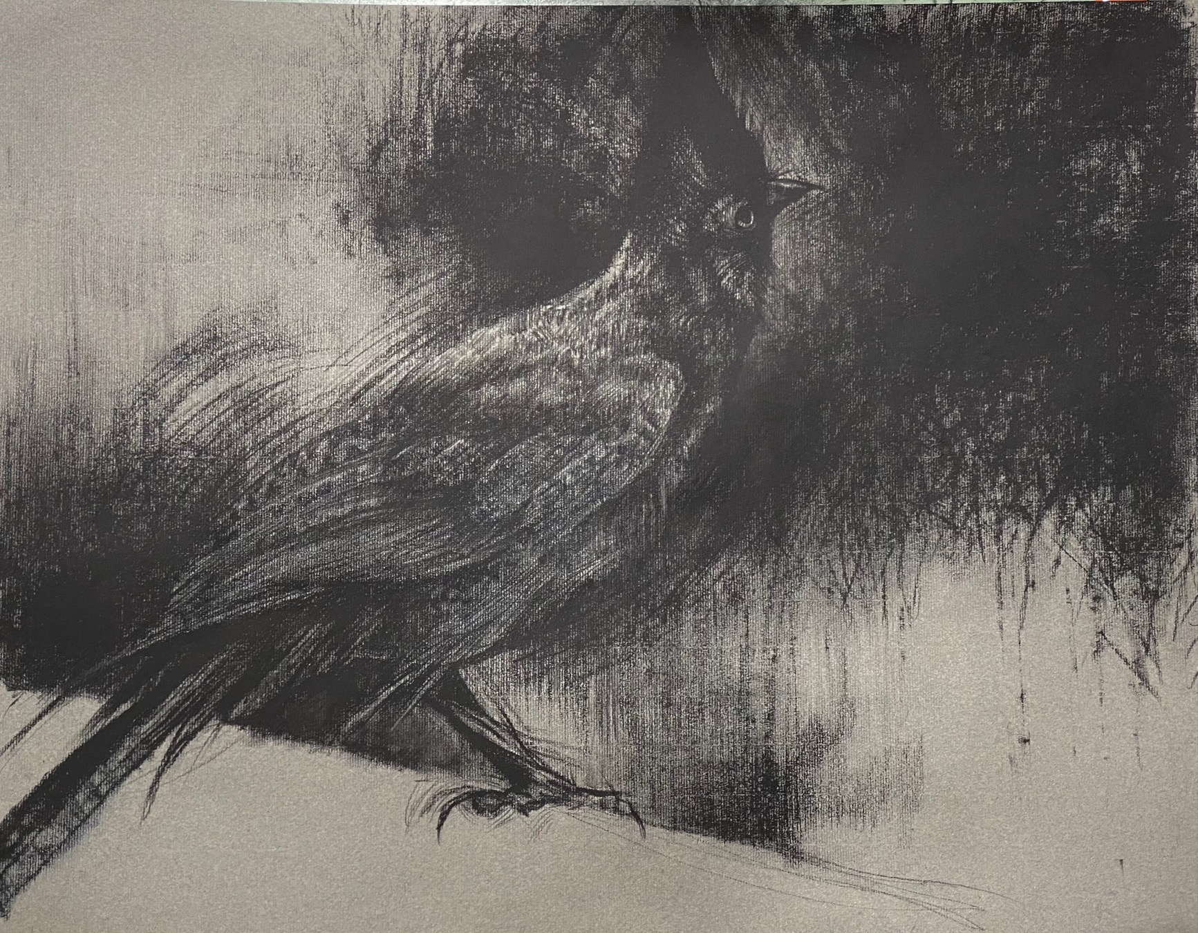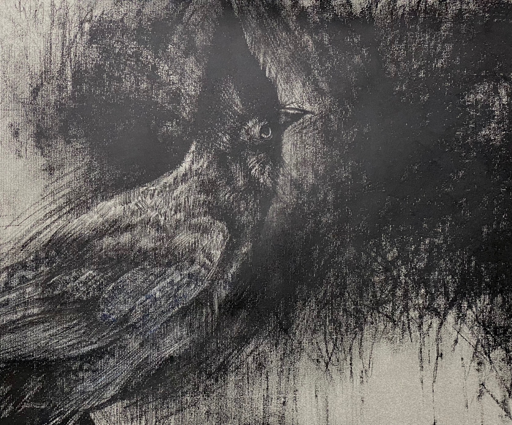 26×20 inches, Charcoal on paper. Portrait of a loud and proud Steller Jay. Title after 18th Century English poem by Alexander Pope.